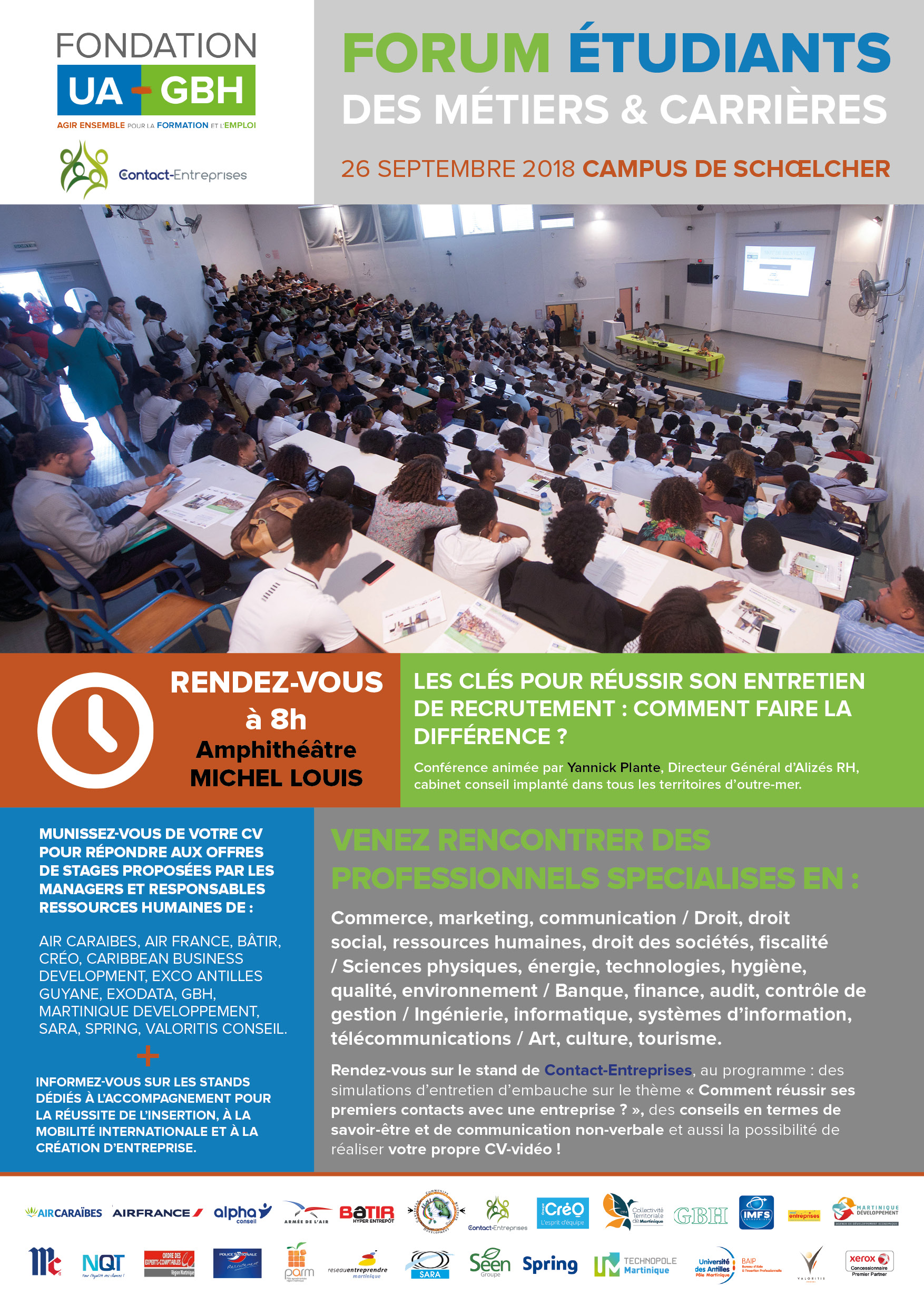 Forum Etudiants des métiers et Carrières le 26 Septembre 2018 sur le Campus de Schoelcher